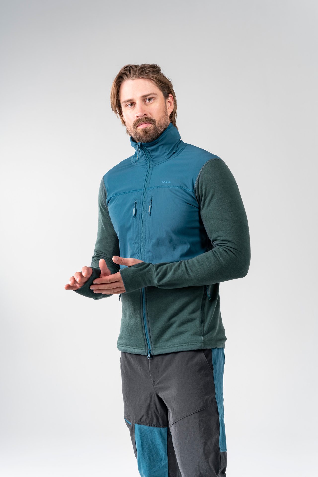 Extend your Herøy collection with the Hybrid jacket. The jacket is body-mapped and wind-resistant. It includes woven wind-resistant material on key areas for added protection against changing weather. The close-fitted hood can be tucked into the collar when not needed. The jacket has a soft Merino inside for insulation and temperature control, ensuring you stay warm and dry during mountain hikes.