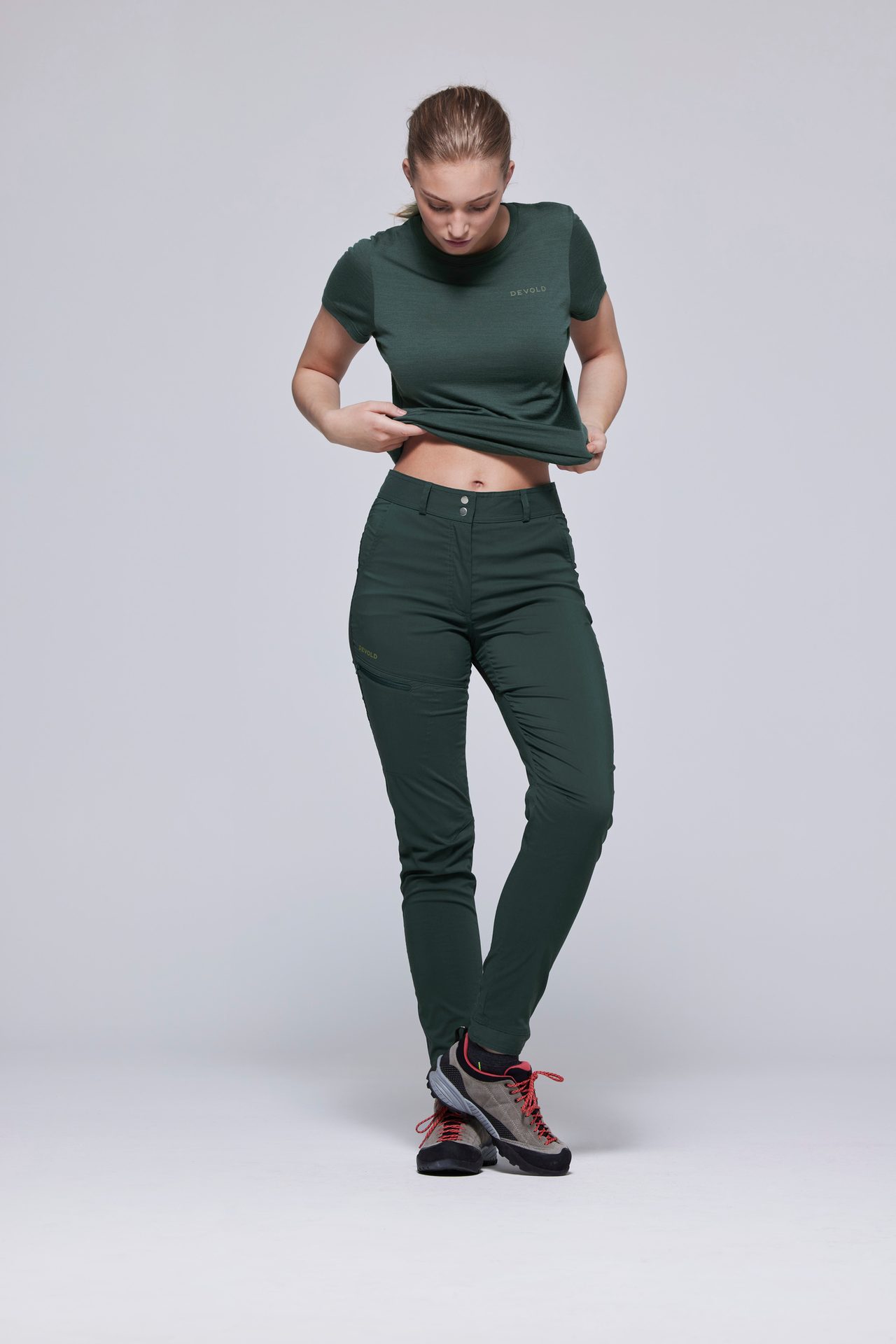 Devold Herøy Pants are light and comfortable hiking trousers. The Merino wool blend ensures excellent breathability, good durability and good elasticity. Wool is also a naturally thermo-regulating material – an important characteristic for high-impact activities. Tailored knees give increased freedom of movement and comfort. With multiple pockets, a comfortable fit, reflective details and the option to tighten the trouser legs, Devold® Herøy are the perfect hiking trousers.